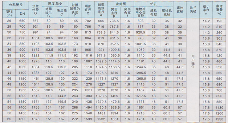 大口徑平焊法蘭的規(guī)格參數(shù)