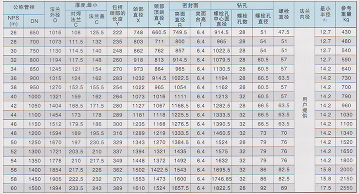 A系列600磅級法蘭的尺寸(相當于MSS SP44)ASME16.47/A-1996(mm)